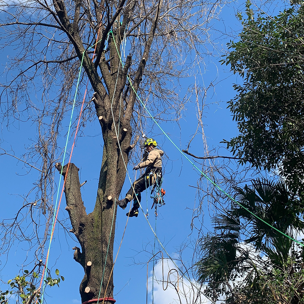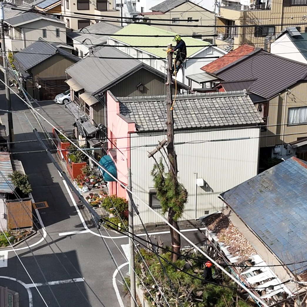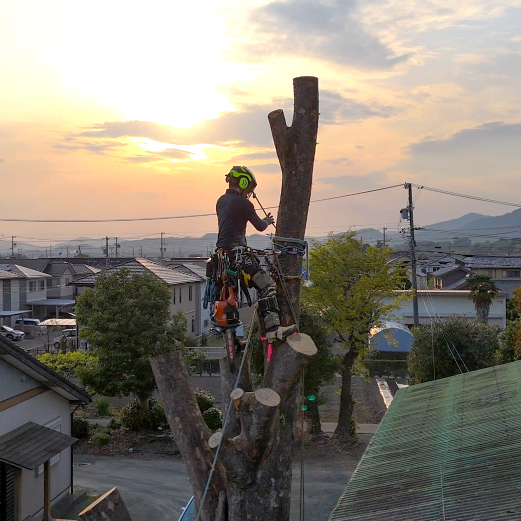 あまり日本では聞き慣れない単語かも知れませんが、海外ではarborist(アーボリスト)と呼ばれ、馴染みがある職種です。主に10~50m程の大径木の伐採で現場に高所作業車が入れない環境や切った木をそのまま下に落とせない環境下(神社、お墓、家屋に当たる)での特殊かつ高難易度の伐採業務です。必要な専門資格を取得、損害保険にも加入済みです。✽下記Instagramに施工動画もあります!